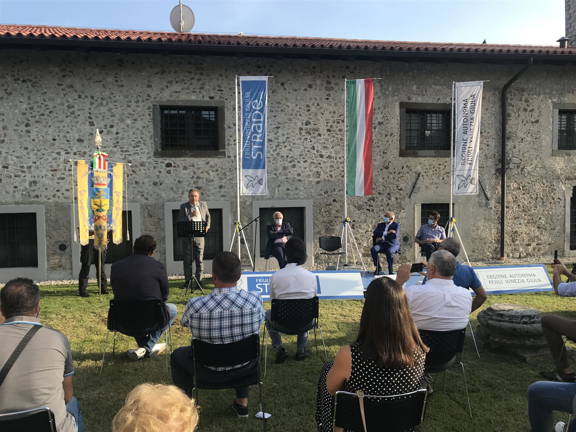 Oggi è stato inaugurato il ristrutturato tratto stradale in porfido che collega le frazioni di Cavalicco e Adegliacco in comune di Tavagnacco dove ad ottobre passerà una delle due tappe friulane del #giroditalia2020. Presenti il Sindaco di Tavagnacco Moreno Liruti, il direttore della divisione viabilità locale di Friuli Venezia Giulia Strade Marco Domenighini, Enzo Cainero e l’assessore regionale alle infrastrutture e territorio Graziano Pizzimenti. Tutti hanno sottolineato l’ottimo lavoro svolto da Friuli Venezia Giulia Strade per questo intervento di sistemazione della pavimentazione in porfido costato circa 280.000 euro. Presenti all’inaugurazione, oltre al RUP dei lavori Francesca Savoia, anche i direttori di Friuli Venezia Giulia Strade della divisione esercizio delle strade regionali Paolo Tassan Zanin e della divisione nuove opere Luca Vittori.