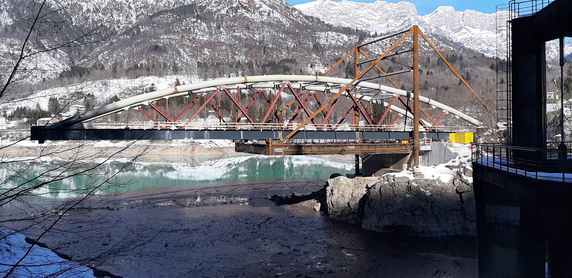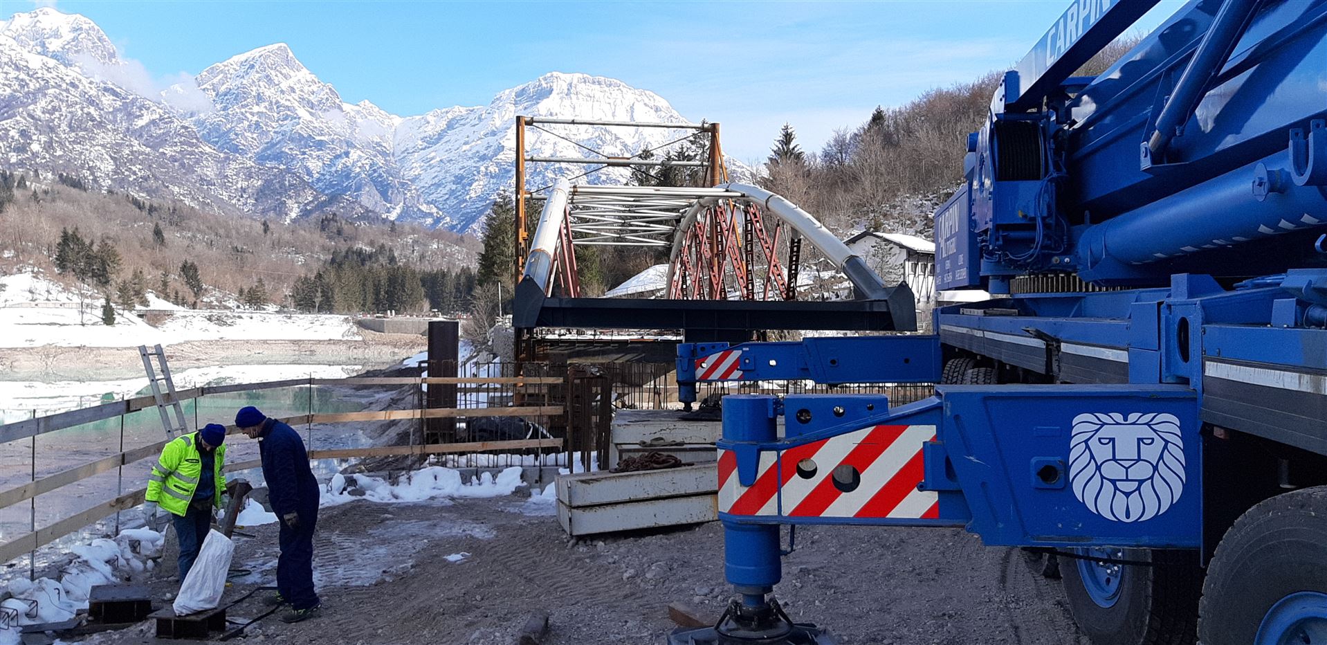 Il nuovo ponte in carpenteria metallica ad unica campata con tipologia ad arco lungo circa 78 metri, infatti, sta per essere varato completamente. Oggi è iniziata la preparazione dell’ultima fase del varo dell’impalcato del ponte, che domani vedrà il posizionamento del manufatto nella sua configurazione definitiva. Verrà impiegata una autogru da 400 tonnellate, che servirà per “tirare” l’impalcato fino nella sua posizione finale sui baggioli di attesa già dotati degli apparecchi di appoggio.
