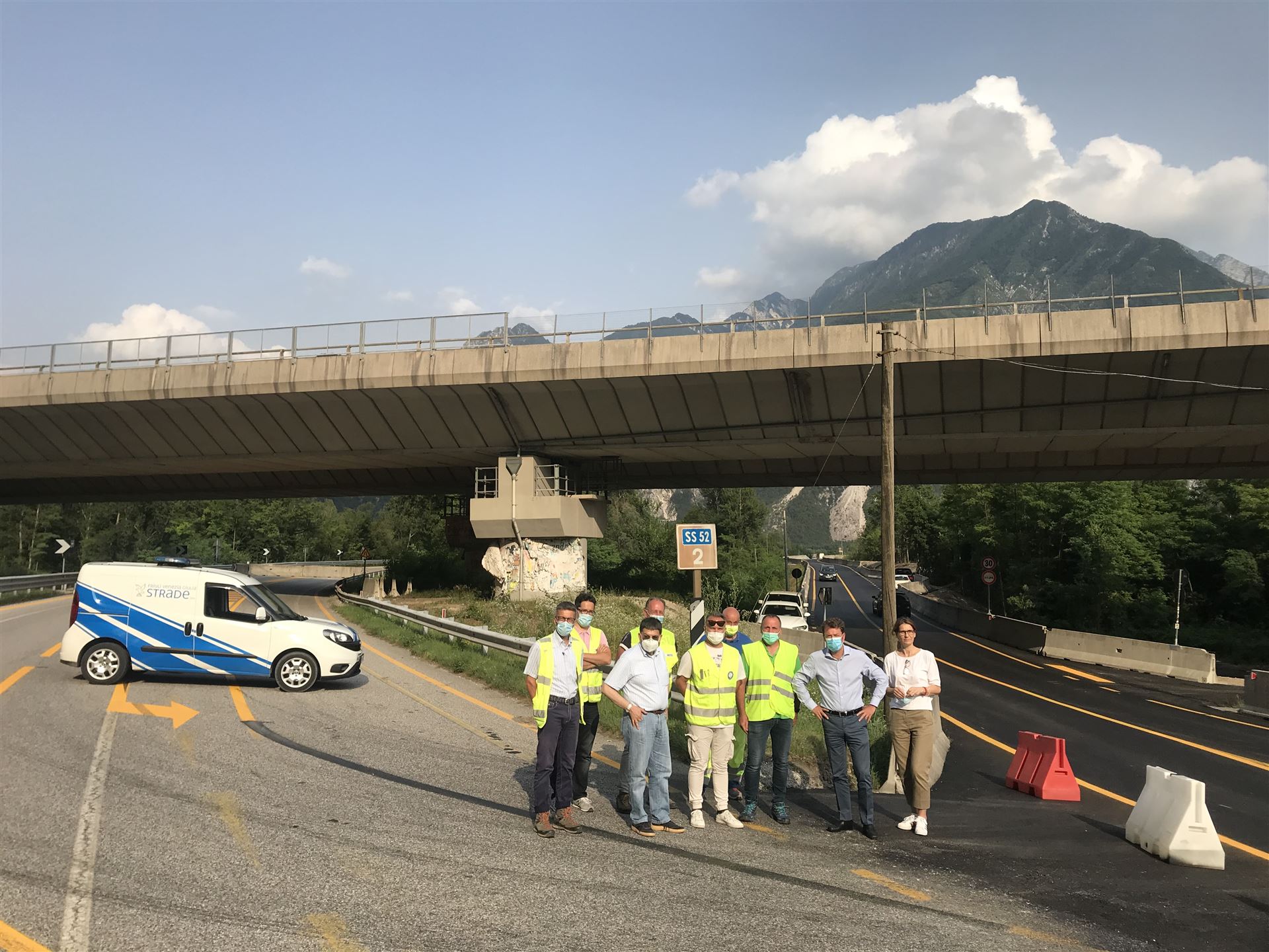 All’aperura ha voluto partecipare anche il Presidente di FVG Strade Raffaele Fantelli per ringraziare le maestranze della BB Service Srl di Tolmezzo e Sioss Srl di Ruda, incaricate dei lavori, e tutti i tecnici ed operatori di FVG Strade, guidati dal Direttore Generale Sandro Didonè assieme alla capocentro Alessandra Biondin, al caponucleo Alessio Vidoni e allo strutturista Pietro Filipuzzi, che per quattro giorni sono stati impegnati nell’organizzare questa nuova viabilità sul fiume Fella.