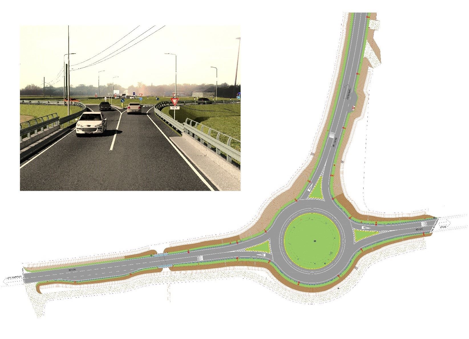 In luogo dell’intersezione a “T” verrà realizzata una rotatoria di diametro esterno pari a 60 m, il cui centro è traslato verso Dignano di circa 25 metri rispetto al centro dell’incrocio esistente. I vantaggi ottenuti grazie a questa soluzione saranno la riduzione della velocità in corrispondenza dell’intersezione con conseguente aumento della sicurezza, una maggiore facilità di svolgimento delle manovre da e per Coseano e una maggiore visibilità dell’intersezione.