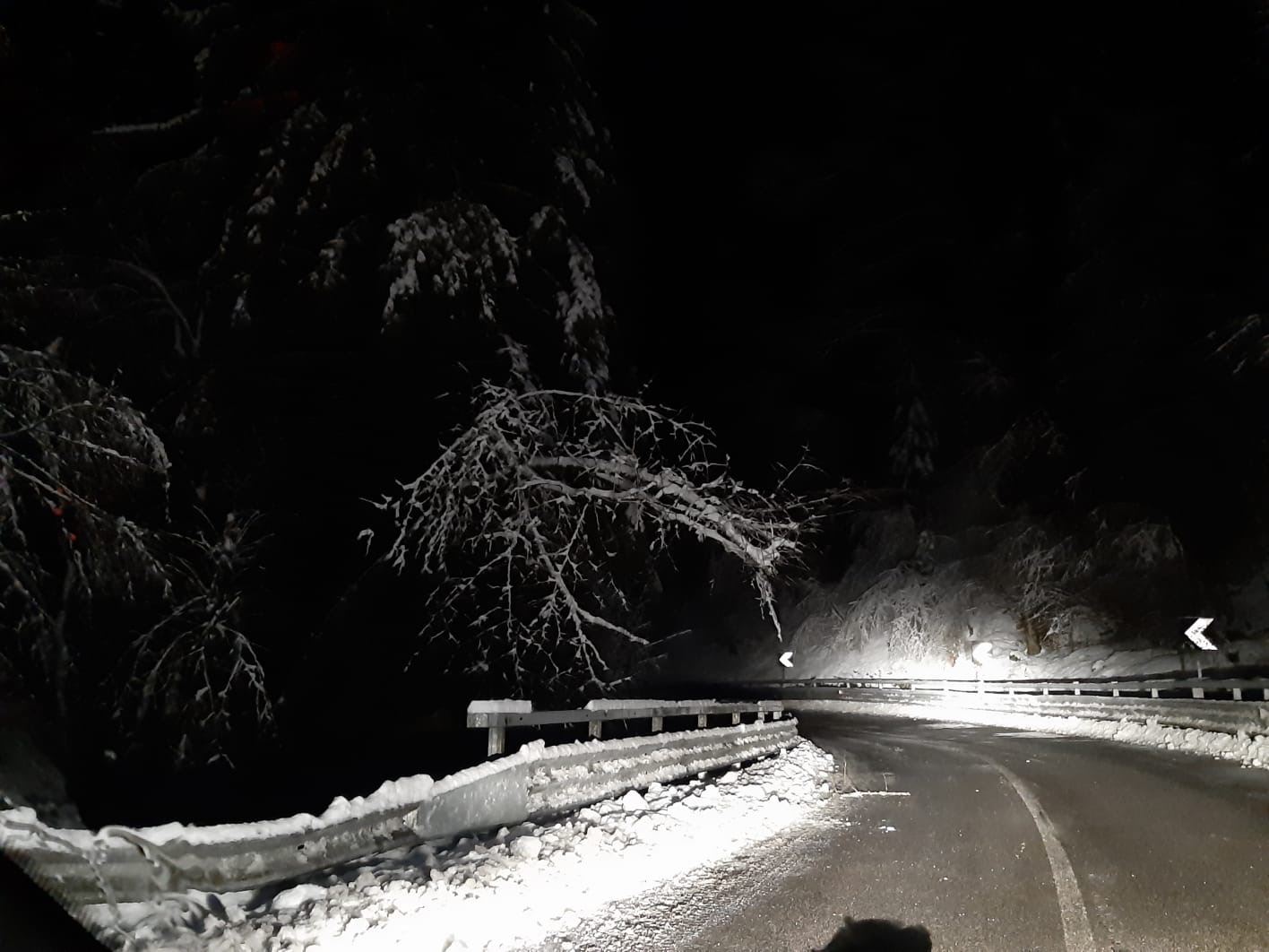 Questa notte sulla SR 355 in comune di Rigolato è stato rimosso un tronco e alcuni rami caduti con il peso della neve, che impedivano la circolazione stradale.