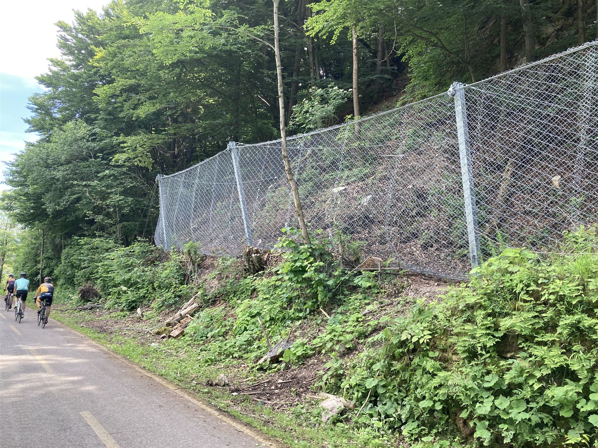 Si sono conclusi con largo anticipo i lavori di messa in sicurezza della pista ciclabile FVGS1 “Alpe Adria” nei comuni di Dogna e Tarvisio. Gli interventi hanno consentito la messa in sicurezza dei versanti in due precisi punti lungo la FVG1, che fa parte della rete Re.Ci.R.: il primo è stato realizzato a Dogna mentre il secondo a Camporosso nel comune di Tarvisio. I lavori prevedevano la realizzazione di barriere paramassi al fine di prevenire la caduta di elementi lungo il tracciato ciclabile sul quale in passato si erano già verificati dei distacchi dal fronte roccioso. Nel sito di Dogna la realizzazione delle reti è avvenuta in quota con l’installazione di un sistema a mensola suborizzontale di raccolta, per una lunghezza di circa 40 m ed uno sporto di 6 m. A Camporosso invece la soluzione ha previsto l’installazione subverticale alla base del fronte attraverso la realizzazione di due reti, la prima per una lunghezza di circa 50 me ed una seconda di 30 m entrambe con una elevazione di 4 m.