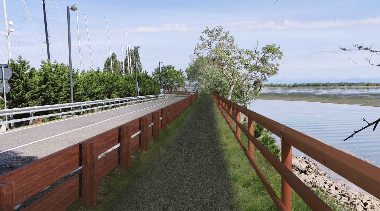 Con i lavori che partiranno tra breve sarà realizzato un nuovo rilevato che consentirà alla ciclabile di arrivare fino alla spalla del Ponte sul Canale Girevole; da lì il percorso continuerà grazie alla realizzazione di un manufatto di scavalco del canale in metallo affiancato all’esistente ponte stradale. Subito dopo, attraversato il ponte e lasciata la laguna alle spalle, le opere prevedono ancora un tratto di rilevato fino a congiungersi poi con il tratto ciclabile in prossimità della rotatoria all’ingresso della città.