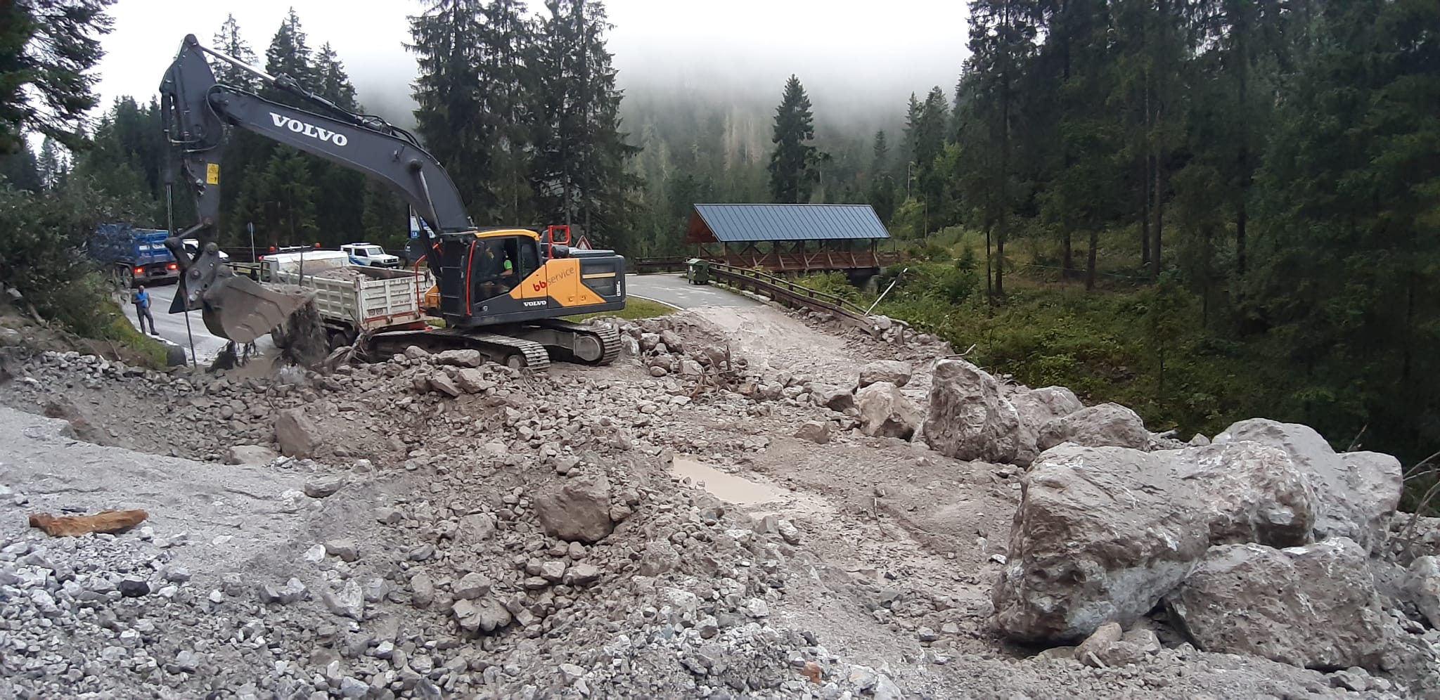 Il personale e i mezzi di FVG Strade al lavoro fin da subito per sgomberare le strade dalla frana e rimettere i tratti interessati in sicurezza. Si prevede una chiusura di un paio di giorni.