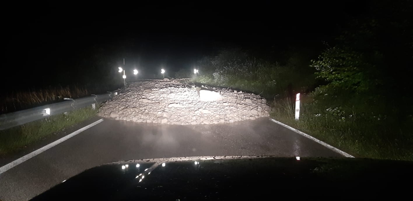 Chiuse la SR 355, la SR 465 e la ex SP 22 a causa di importanti colate detritiche sulla carreggiata a seguito del forte temporale che si è scatenato verso mezzanotte.